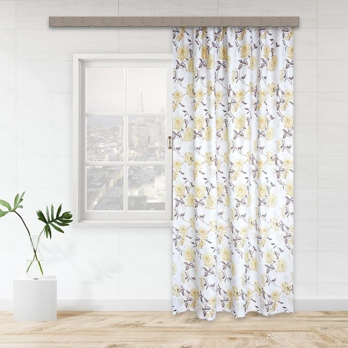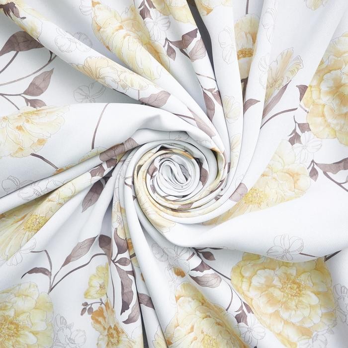 Штора портьерная блэкаут Японский пион 135×260 см, жёлтый, пэ 100%