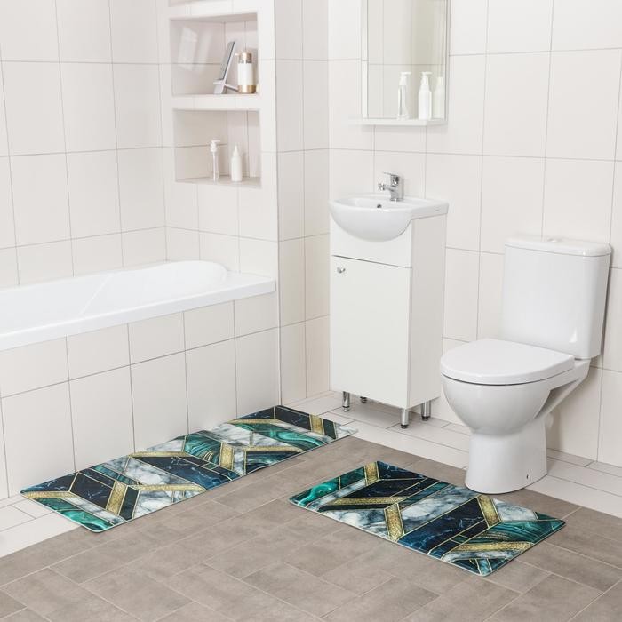 Набор ковриков для ванны и туалета Доляна «Малахит», 2 шт: 45×120, 45×75 см