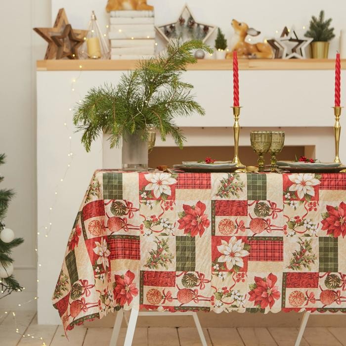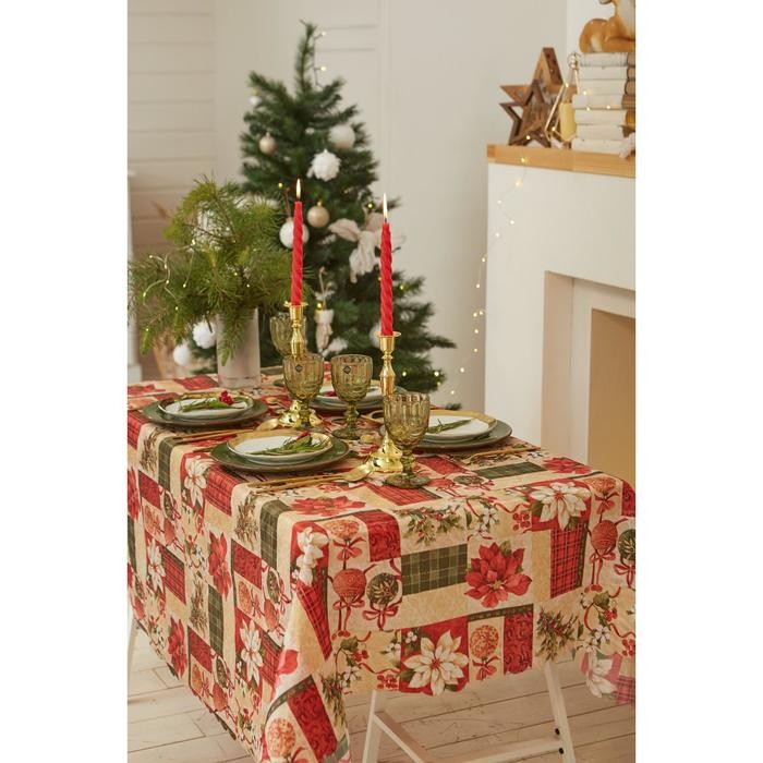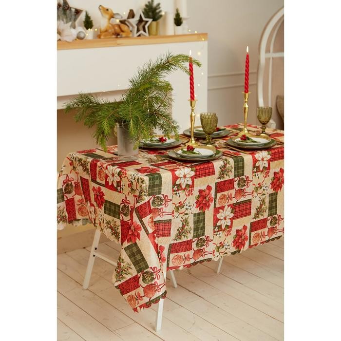 Скатерть Доляна «Новый год: Новогодние игрушки» 145*260 +/- 2 см, 100% п/э