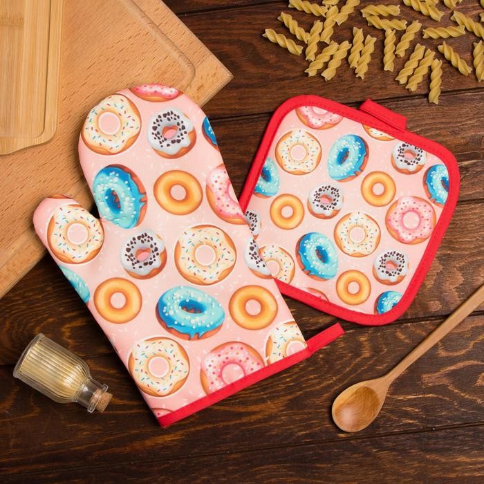 Кухонный набор Доляна «Пончики», прихватка 17*17 см, рукавица 26*16 см,100% п/э