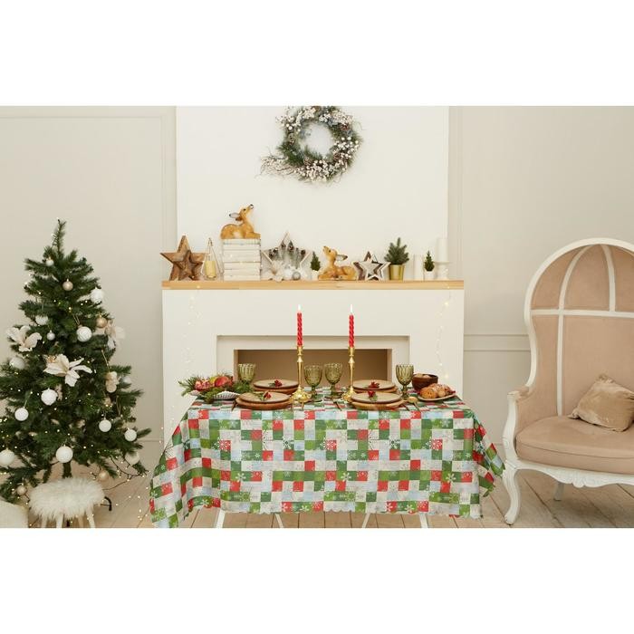 Скатерть Доляна «Новый год: Новогодняя мозаика» 110*145 +/- 2 см, 100% п/э