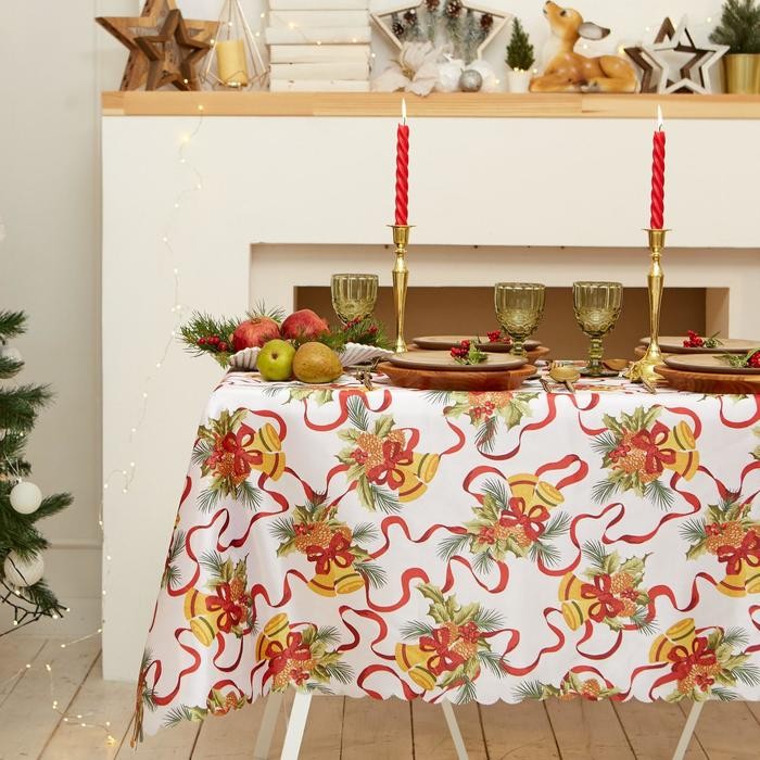 Скатерть Доляна «Новый год: Новогодние колокольчики» 110*145 +/- 2 см, 100% п/э