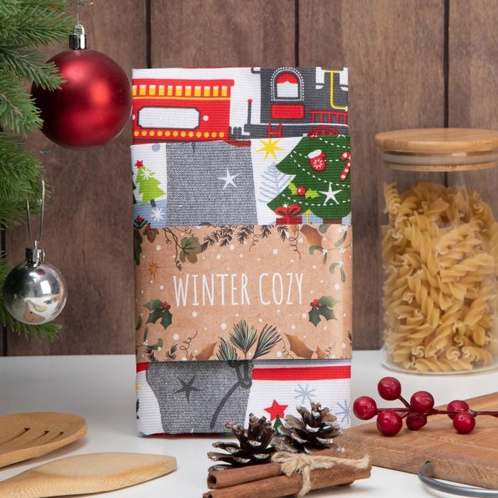Набор кухонных полотенец Доляна «Волшебного года» 35х60см-2шт, 100% хл