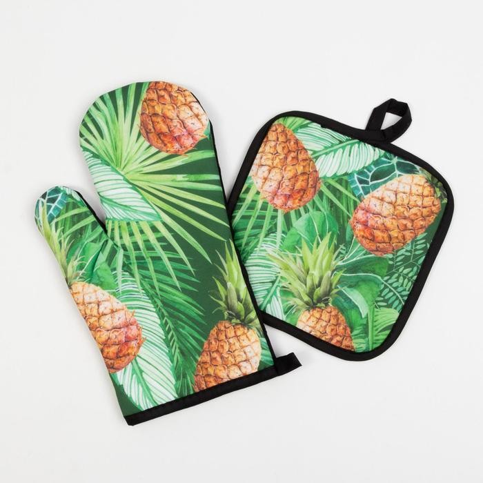 Кухонный набор Доляна «Ананасы» прихватка 17*17 см, варежка-прихватка 26*16 см, 100% п/э