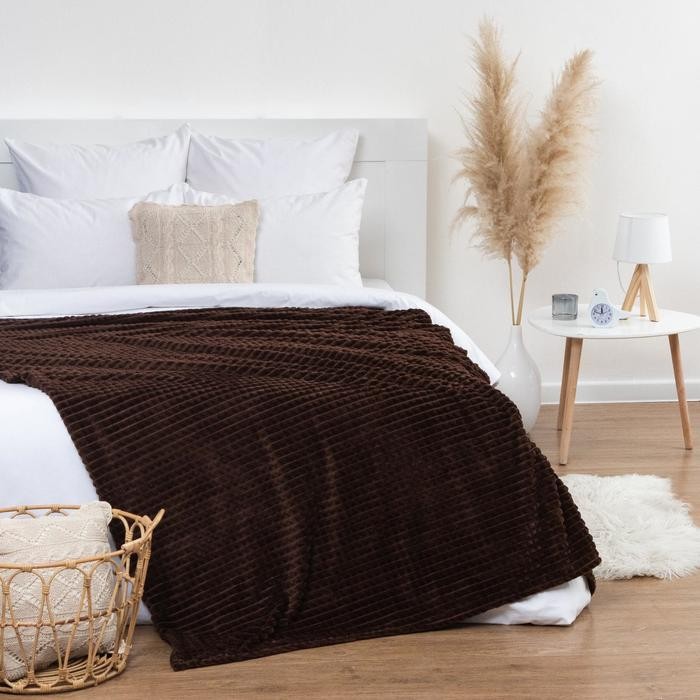 Плед Этель «Клетка» 200*220 см, цв.коричневый, корал-флис, 240гр/м2, 100% полиэстер