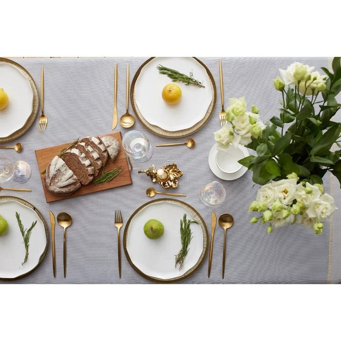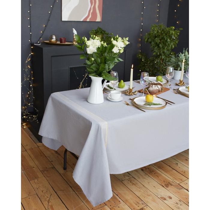 Скатерть «Этель» 110×165 см, цв. серый с золотой нитью, 100% хлопок, 163 г/м2