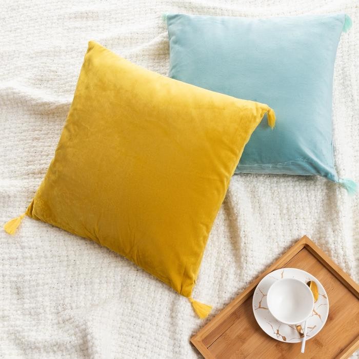 Наволочка на подушку с кисточками Этель цвет голубой, 45×45 см, 100% п/э, велюр