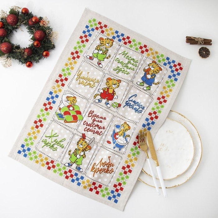 Новогоднее полотенце Счастье это просто 45×60 см, лен 50%, хлопок 50%, 160г/м2