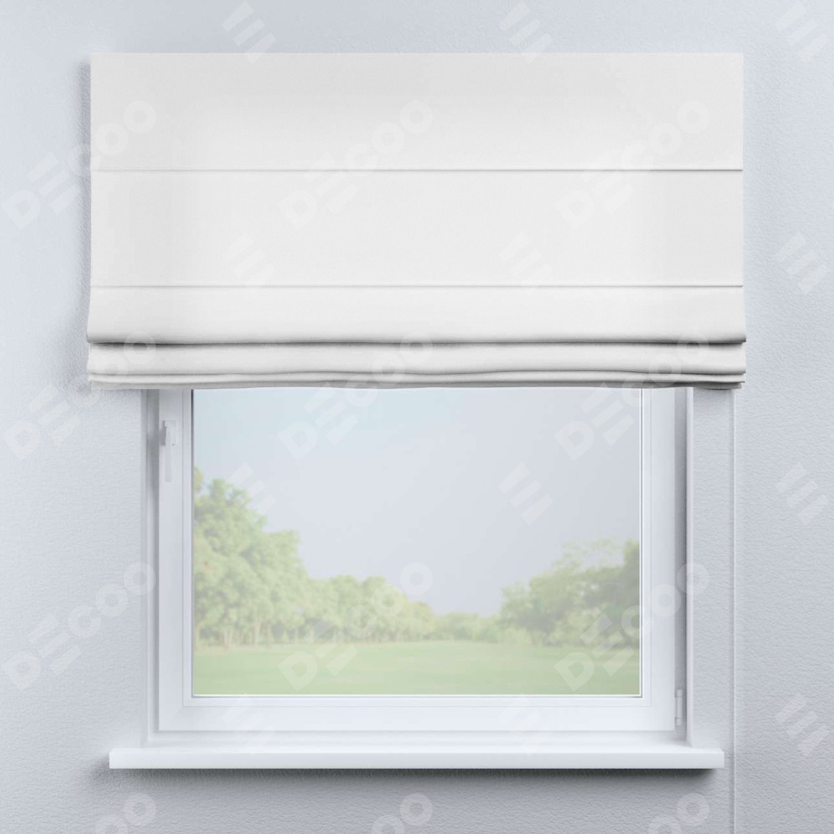 Римская штора производителя «Cortin», используется для проёма, пошита из ткани вельвет белый, артикул ткани 10810. Имеет универсальный механизм и подходит для монтажа: на потолок, на стену и в нишу.