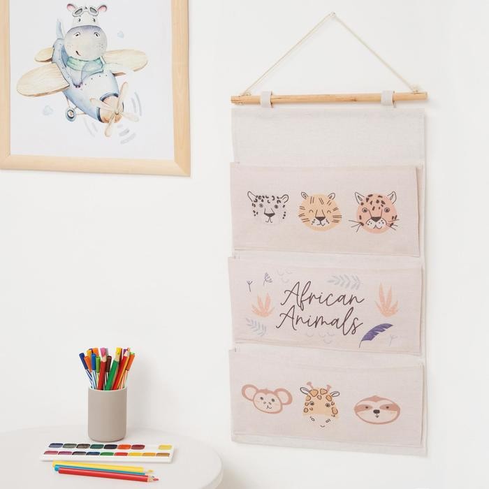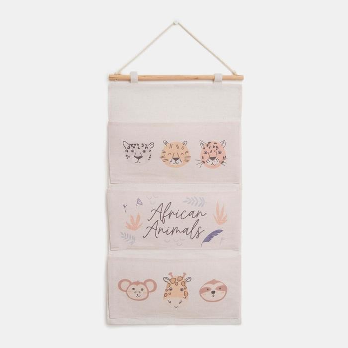 Кармашек текстильный Этель «African animals», 3 отделения, 34*63,5 см