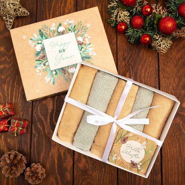 Набор махровых полотенец Этель New year 30×30 см -5шт, 100% хл, 340гр/м2