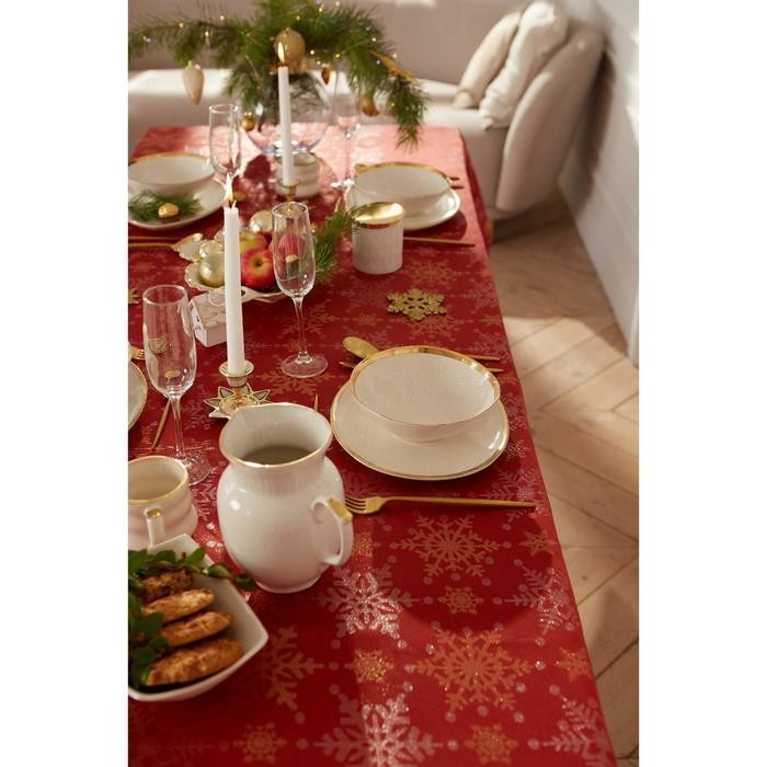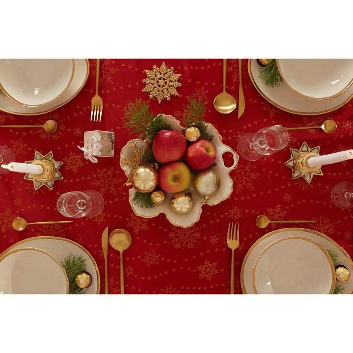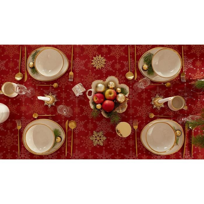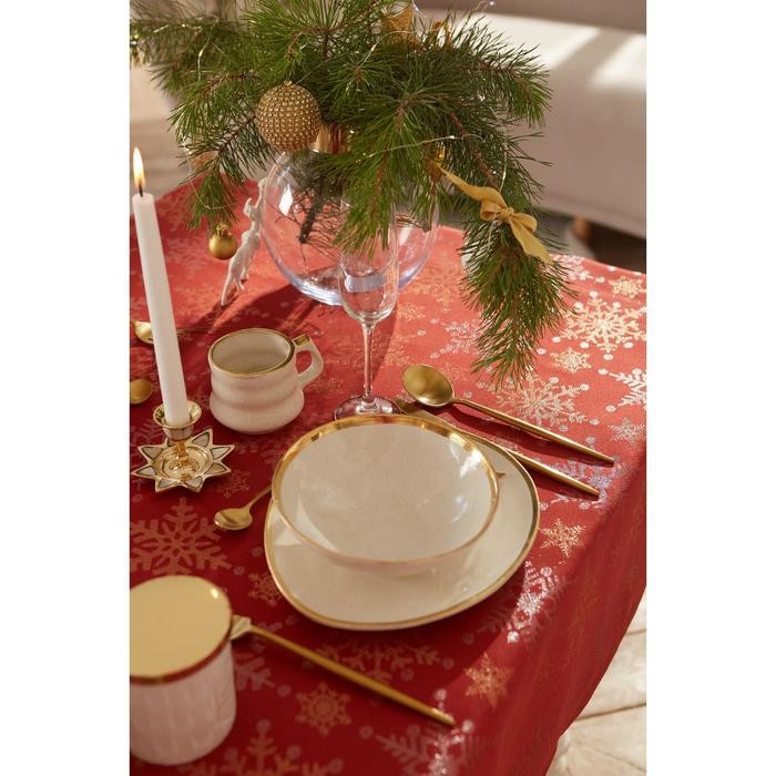 Скатерть Этель «Снежинки» цв.красный, 142*110 +/-3 см, 115 ±10 гр,100% п/э