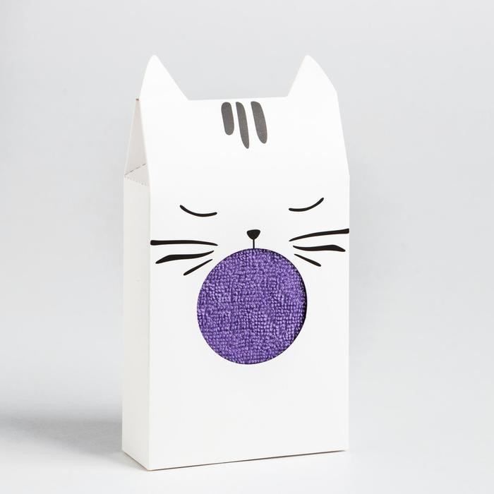 Полотенце подарочное Экономь и Я «Котик» 30*60 см, сиреневый, 100% хл, 320 г/м2