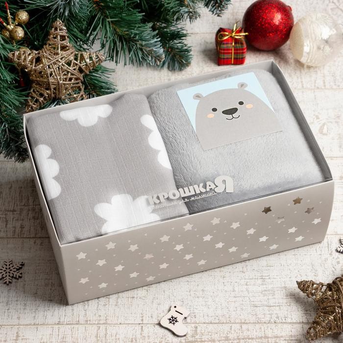 Набор Крошка Я «Серый мишка», плед 90×90 см, пеленка 75×120 см