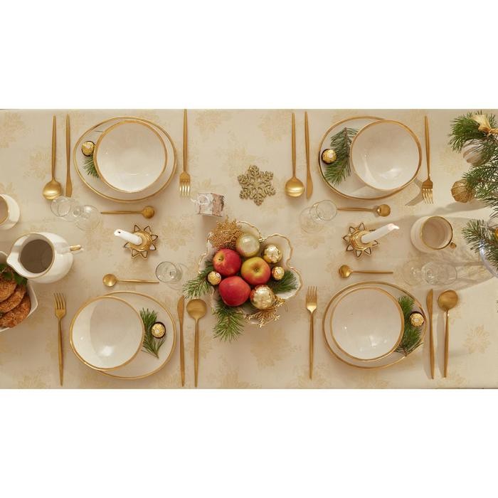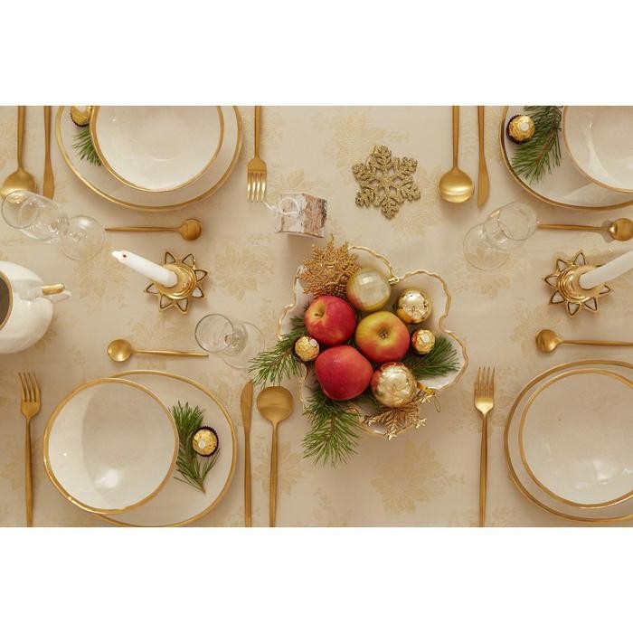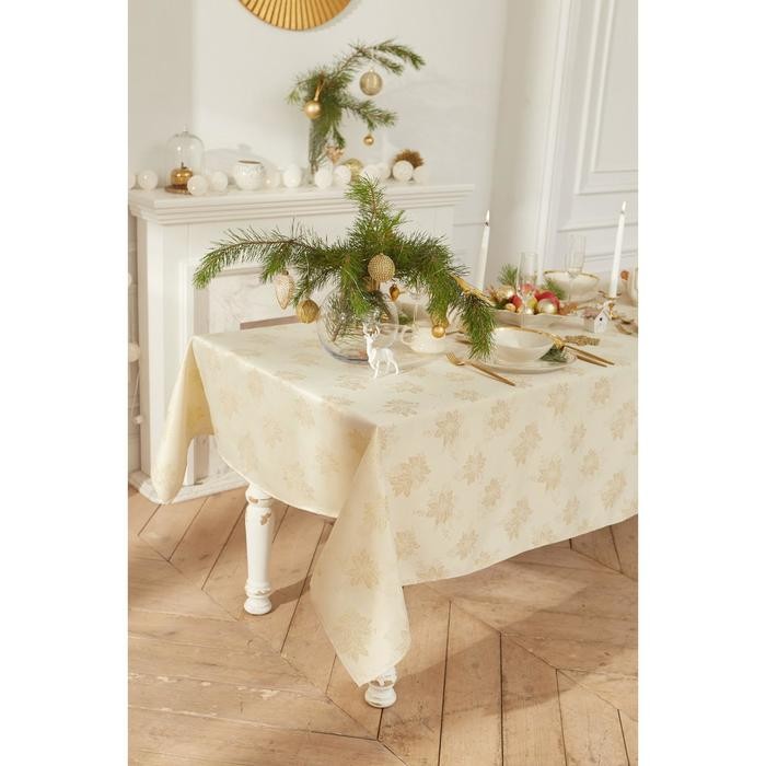 Скатерть Этель «Пуансеттия» цв.золото, 142*110 +/-3 см, 115 ±10 гр,100% п/э
