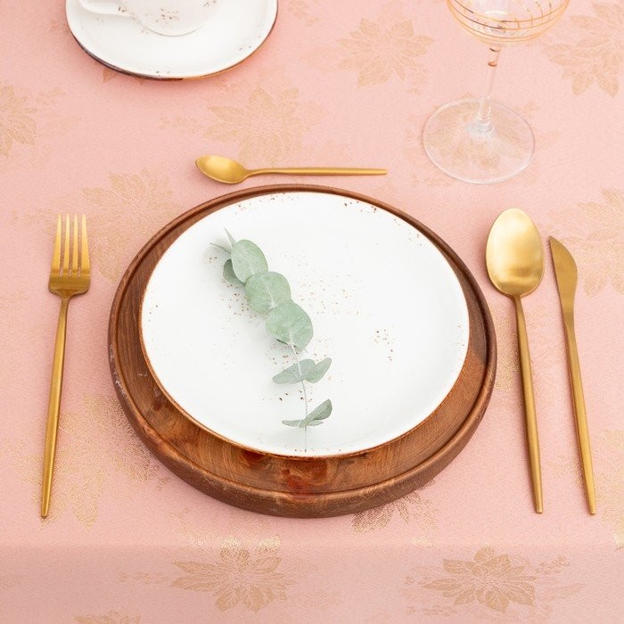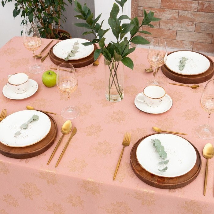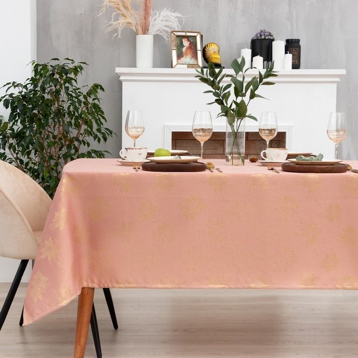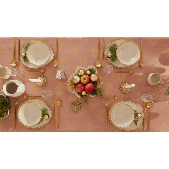 Скатерть Этель «Пуансеттия» цв.розовый, 142*283 +/-3 см, 115 ±10 гр,100% п/э