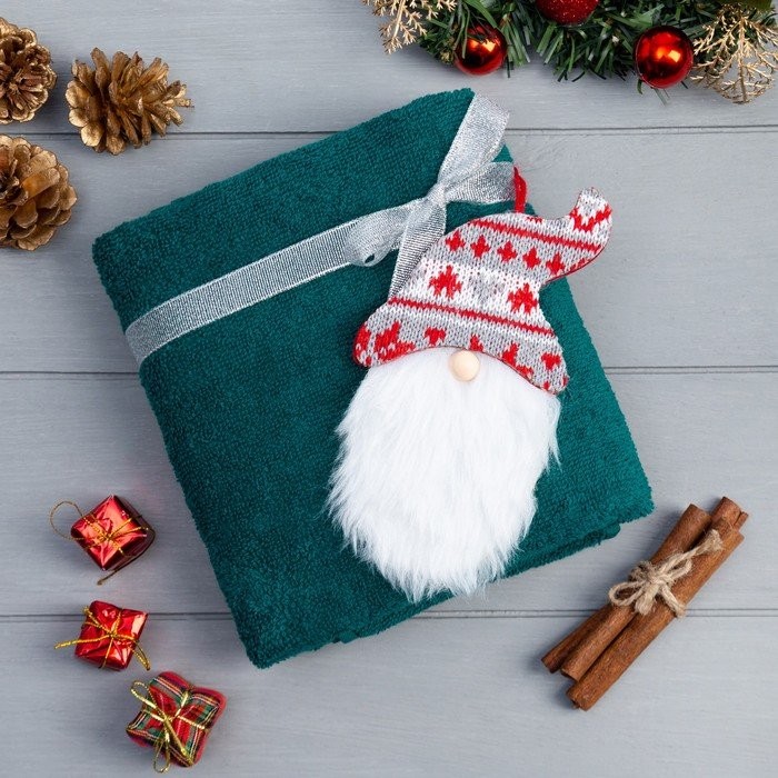 Подарочное полотенце с игрушкой Этель «Гном» 50*90 см, цв.изумрудный, 100% хл, 320г/м2