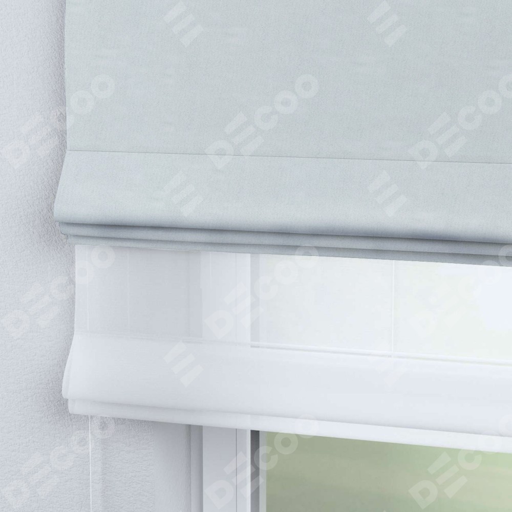 Римская штора день-ночь производителя «Cortin», используется для проёма, пошита из двух полотен, с лицевой стороны блэкаут однотонный дымчато-молочный артикул 88282, вторая ткань тюль (по стандарту комплектуется тюль белого цвета артикул V-01). Имеет универсальный механизм и подходит для монтажа: на потолок, на стену и в нишу.