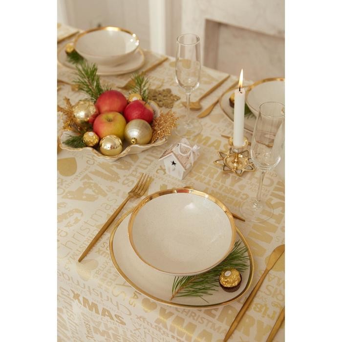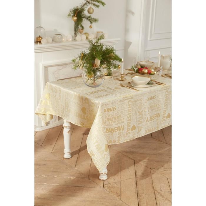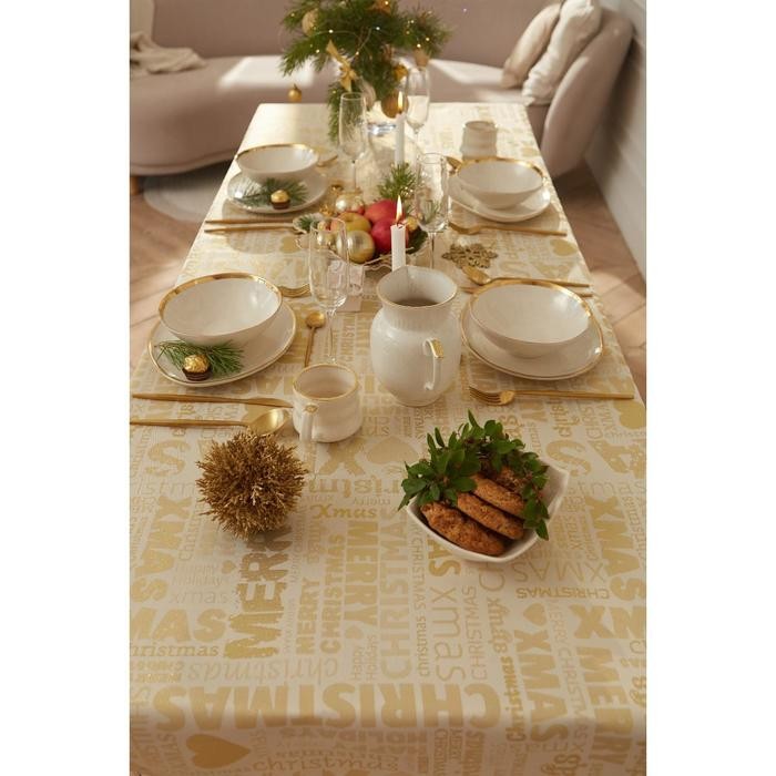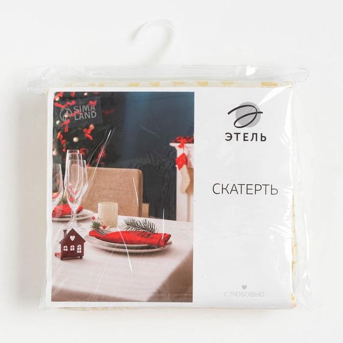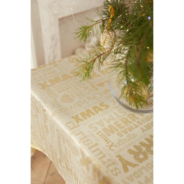 Скатерть Этель «Новый год: Merry xmas» цвет золотой, 142*283 +/-3 см, 115 ±10 гр, 100% п/э