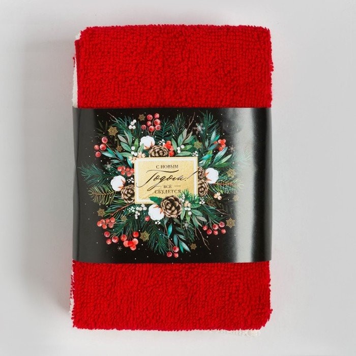 Набор махровых полотенец Этель «Всё сбудется» 30×30 см-3шт, 340гр/м2, 100% хлопок