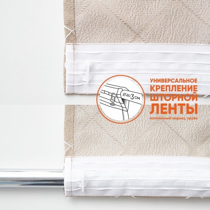 Шторы неприхотливы в уходе, прочны и долговечны. Легко драпируются и почти не сминаются. Портьеры готовы к использованию, к ним пришита универсальная шторная лента. Возможно крепление на крючки, а также трубу диаметром до 3 см. С помощью специальных шнуров в ленте можно создать аккуратные, ровные складки.