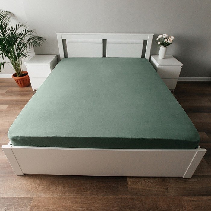 Простыня на резинке трикотажная, размер 160х200х25см, цвет хаки, кулирка 120г/м², 100% хлопок