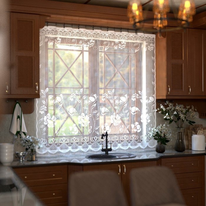| Тип тюли: | Готовый, Короткий, С цветами |