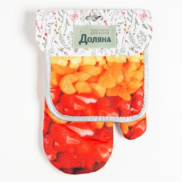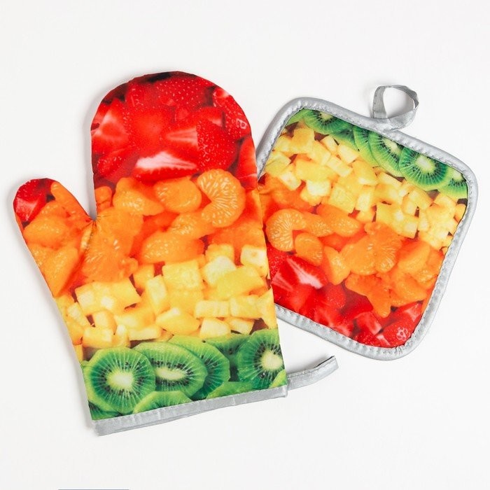 Кухонный набор (2 предмета) Доляна «Фрукты», прихватка 17×17 см, варежка 26×16 см, 100% п/э