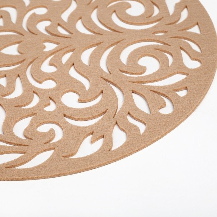 Салфетка декоративная Доляна"Узоры» цвет бежевый, d 30 см, 100% п/э, фетр