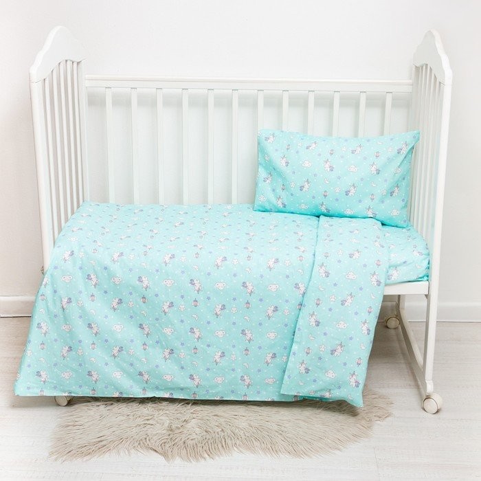 Постельное бельё детское «Единорожки», цвет бирюзовый, 112×147, 100×150, 40×60 1 шт, бязь, хл100 120 г/м