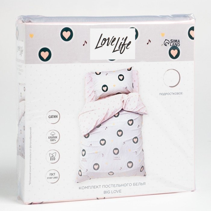 Постельное белье 1.5 сп «LoveLife» Big love, 143×215 см,150×214 см,50×70 см-1 шт. сатин