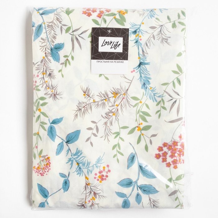 Простыня на резинке LoveLife 160*200*25см, «Flowers», 100% хлопок, сатин, 125г/м²