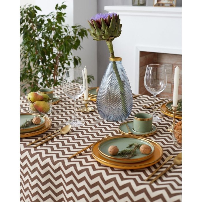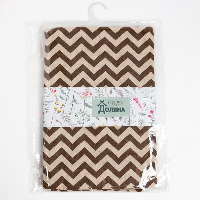 Скатерть Доляна 145х145см, Зигзаг цв.коричневый, 100%пэ, рогожка 200 гр/м