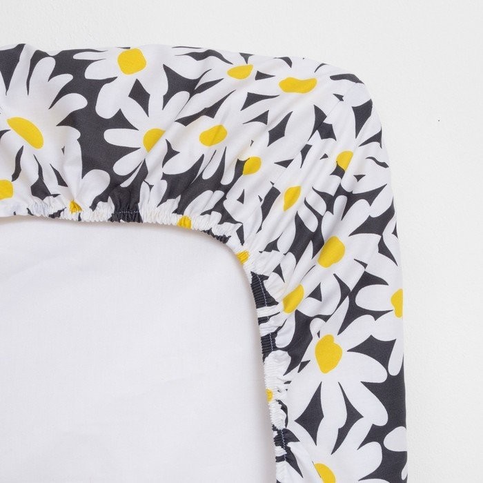 Простыня на резинке LoveLife 160*200*25см, «Ромашки», 100% хлопок, сатин, 125г/м²