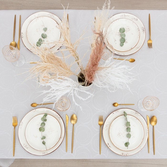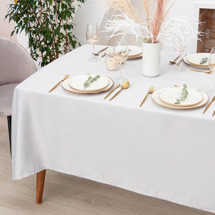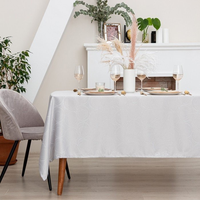 Скатерть Этель «Круги» цв.серебро, 142*180 +/-3 см, 115 ±10 гр,100% п/э