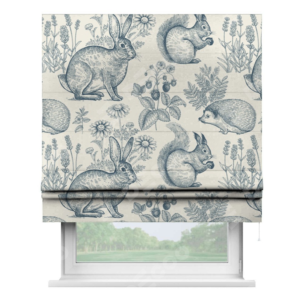 Римская штора производителя «Cortin», используется для проёма, пошита из ткани блэкаут с нанесением сублимационной печати «На лугу». Имеет универсальный механизм и подходит для монтажа: на потолок, на стену и в нишу.