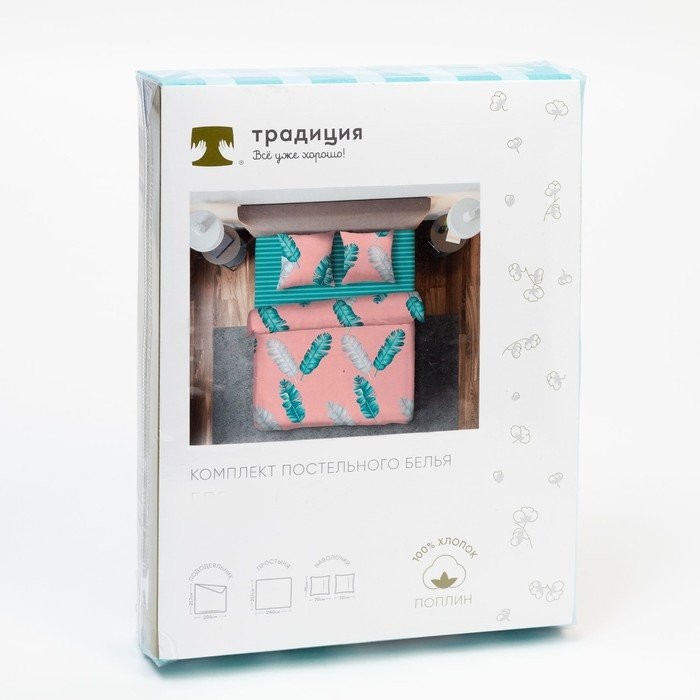 Постельное бельё евро «Традиция Перья», размер 200×217 см, 220×240 см, 70×70 см, 2 шт, поплин, 100% хлопок