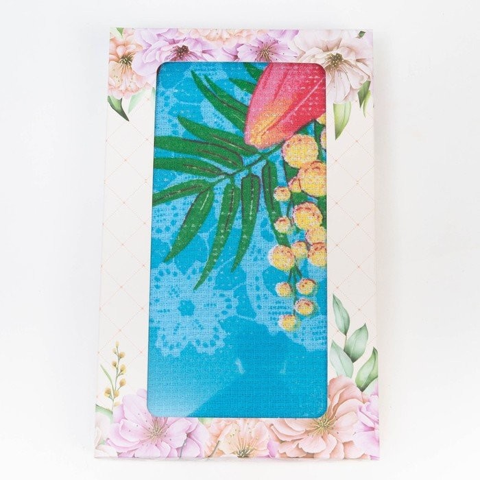 Полотенце в коробке 45×60 см, Лилия, бирюза, вафля, 160 гр/м2, хлопок 100%