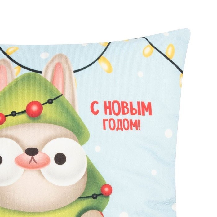 Наволочка на подушку Этель «Зайчик с елкой», 40*40 см, 100 п/э, велюр