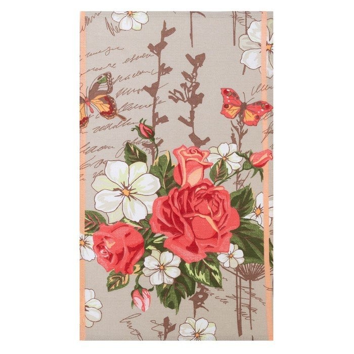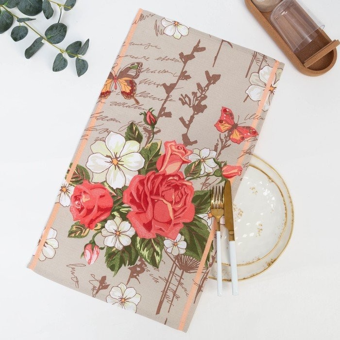 Полотенце 35×60 см, Красные и белые пятна, песочный, вафля, 160 гр/м2, хлопок 100%