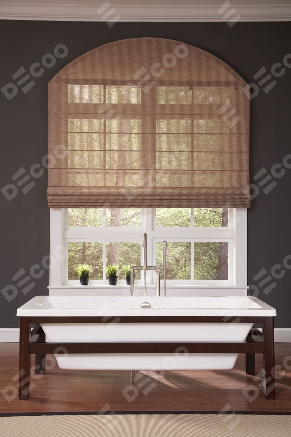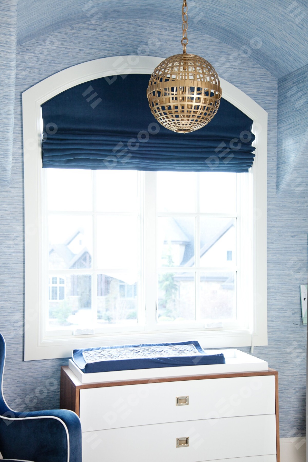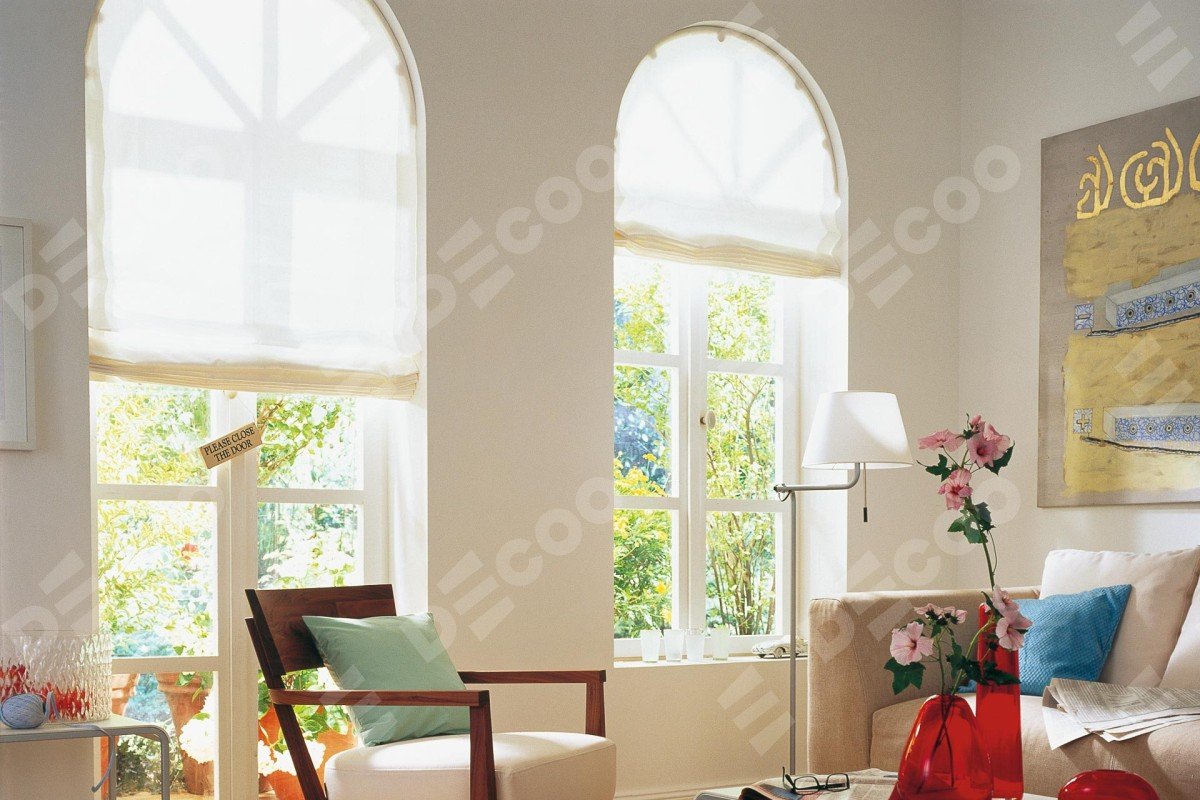 Римская штора «Кортин» на арочное окно из любой ткани