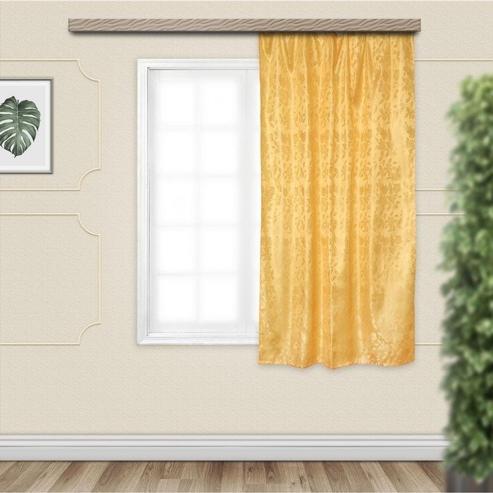 Штора для кухни Жаксатин цветы 135×180 см, золото, пэ