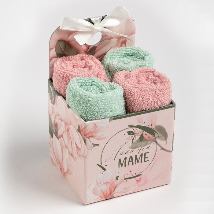 Набор махровых полотенец Этель «Маме» 30×30 см-4шт, 100% хлопок 340 гр/м2