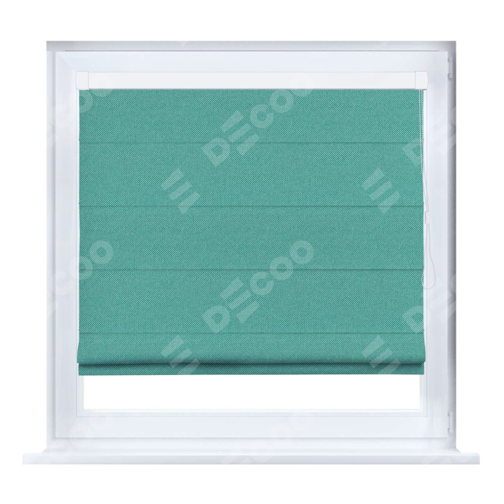 Римская штора кассетного типа, производителя «Cortin», устанавливается только на пластиковые окна и прилегает к стеклопакету, пошита из ткани лён димаут бирюзовый, артикул 23.