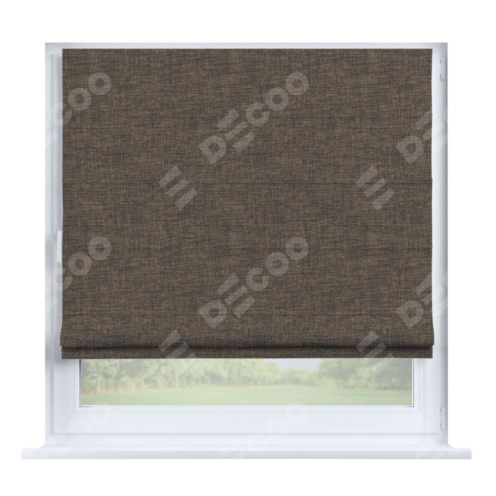 Римская штора производителя «Cortin», устанавливается на створку окна, пошита из ткани рогожка димаут коричневый, артикул 80420. Штора шьётся по индивидуальным размерам, для данного типа римской шторы возможная ширина от 35 до 150 см., высота до 250 см.