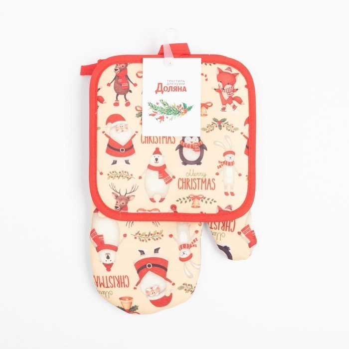 Кух. набор 2 пр. Доляна «Животные» прих. 17*17 см, вареж. 26*16 см,100% п/э