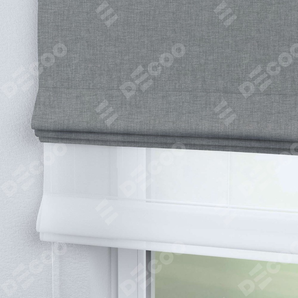 Римская штора день-ночь производителя «Cortin», используется для проёма, пошита из двух полотен, с лицевой стороны рогожка димаут тёмно-серый артикул 80418, вторая ткань тюль (по стандарту комплектуется тюль белого цвета артикул V-01). Имеет универсальный механизм и подходит для монтажа: на потолок, на стену и в нишу.