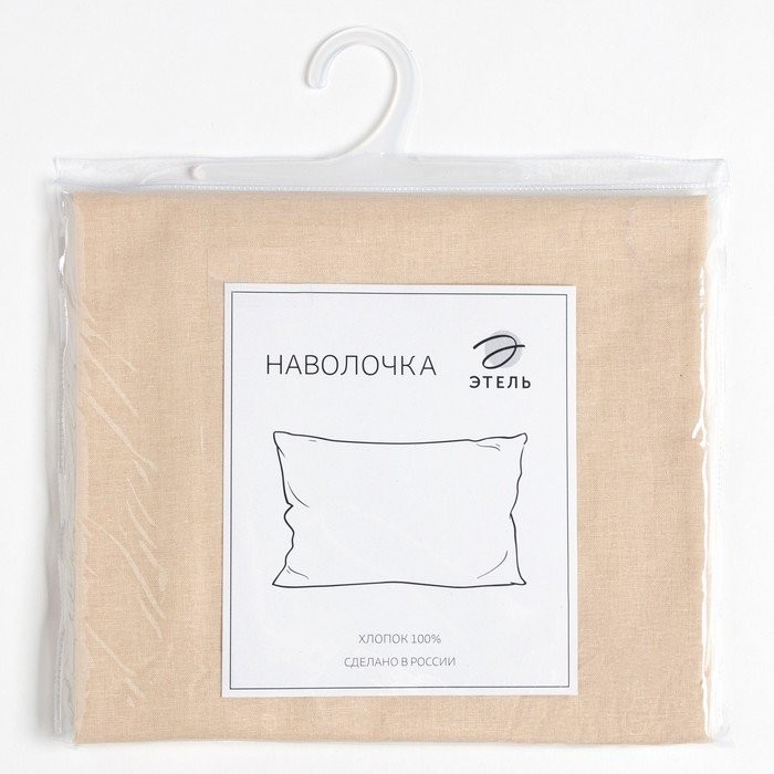 Наволочка Этель 50*70 см, цв. бежевый, 100% хлопок, поплин, 125 г/м²