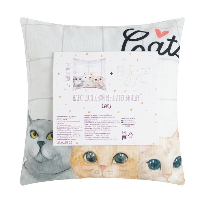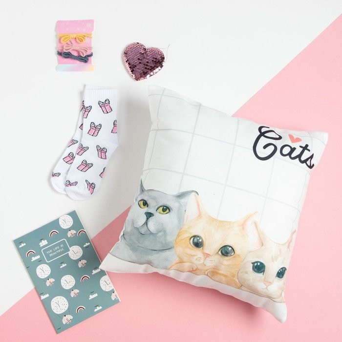 Подарочный набор «Cats» подушка-секрет, 40×40 см и аксессуары