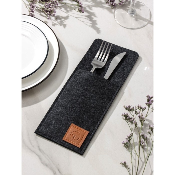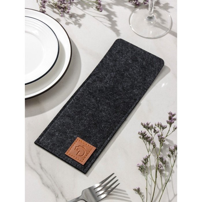 Конверт для столовых приборов Доляна «Грэй», 25×10 см, толщина 2 мм, цвет чёрный